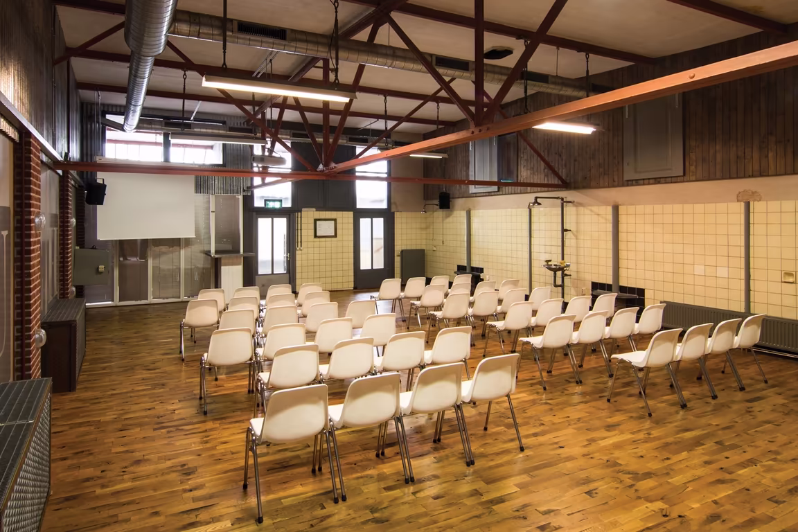 Waar vroeger lijnzaadolie werd geproduceerd, vind je nu een van de meest indrukwekkende locatieblokken van DeFabrique: de Perserij. Dit locatieblok biedt de Perserij als grote plenaire zaal en heeft vier unieke subruimtes die elk hun eigen verhaal vertellen. Het Douchelokaal met vintage douche-installaties en de Meelzolder, Havenmeester en Postkamer met karakteristieke landingsbaanlampen. Met een eigen foyer als ontvangstruimte en de Jutekelder als flexibel in te richten ruimte, bijvoorbeeld voor catering of een subsessie, geef je jouw evenement precies vorm zoals je wilt. Of het nu gaat om plenaire sessies, creatieve workshops of grote bijeenkomsten, de ruimtes geven elk evenement extra karakter.